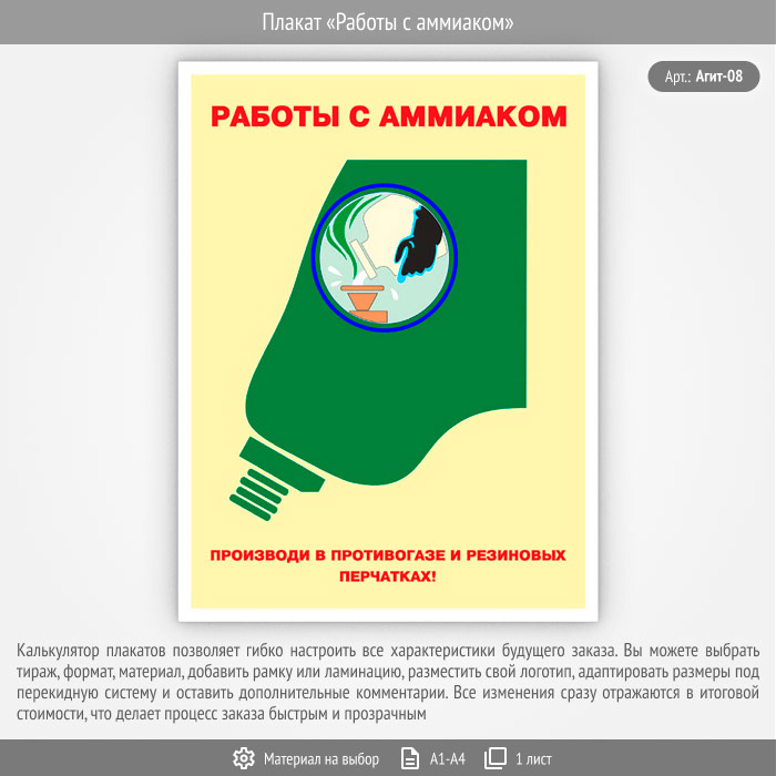 Плакат «Работы с аммиаком» (Агит-08, 1 лист) в Кашире купить