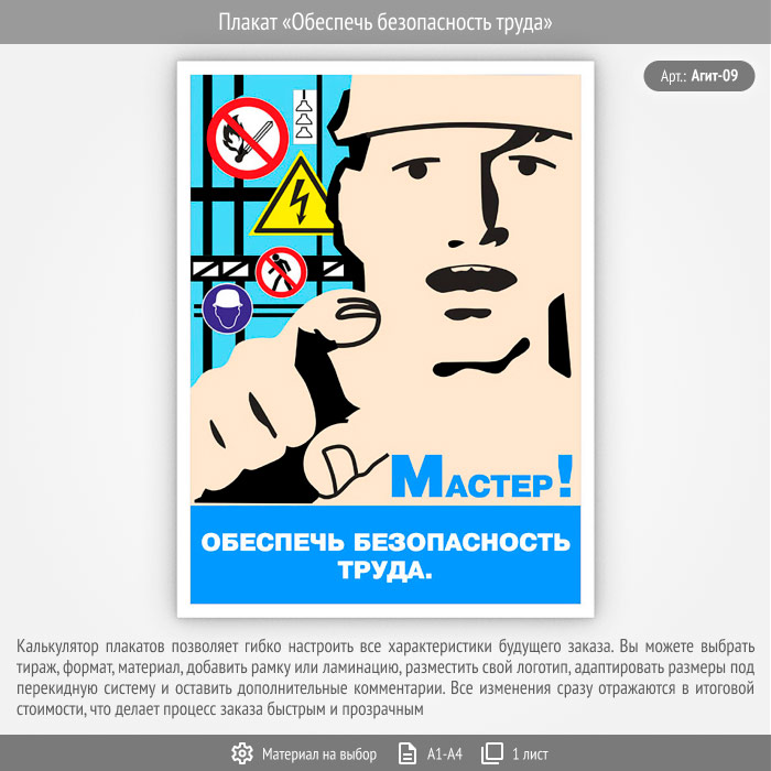 Плакат «Обеспечь безопасность труда» (Агит-09, 1 лист) в Кашире купить