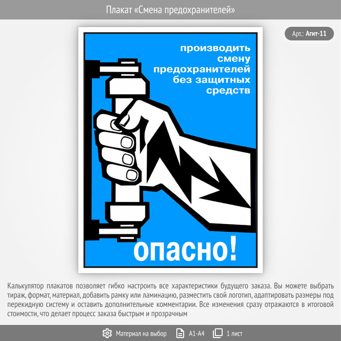 Плакат «Смена предохранителей» (Агит-11, 1 лист) в Кашире купить