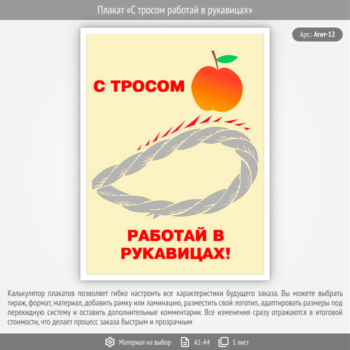 Плакат «С тросом работай в рукавицах» (Агит-12, 1 лист) в Кашире купить