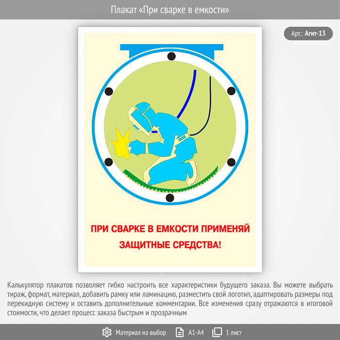 Плакат «При сварке в емкости» (Агит-13, 1 лист) в Кашире купить