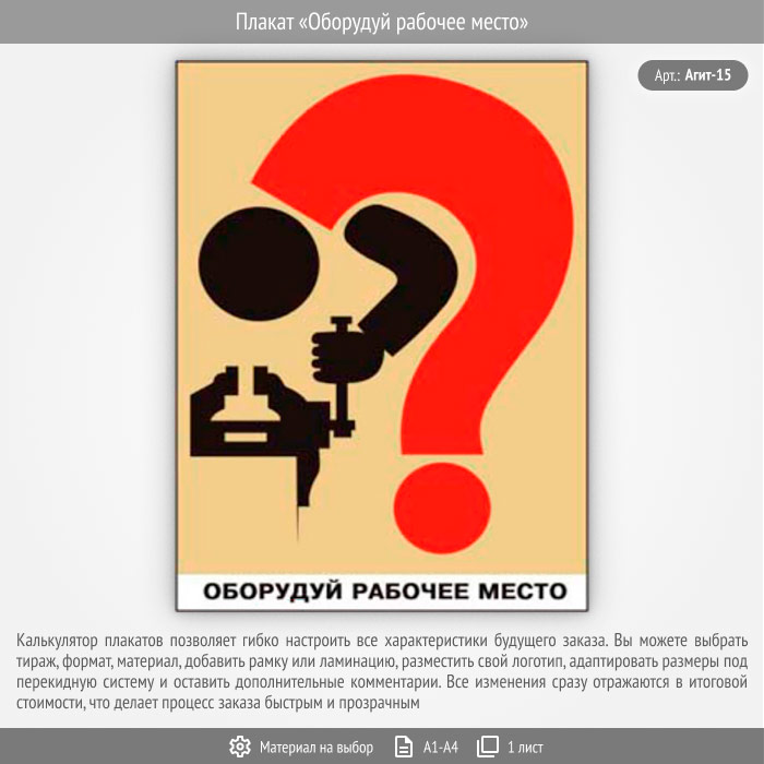 Плакат «Оборудуй рабочее место» (Агит-15, 1 лист) в Кашире купить