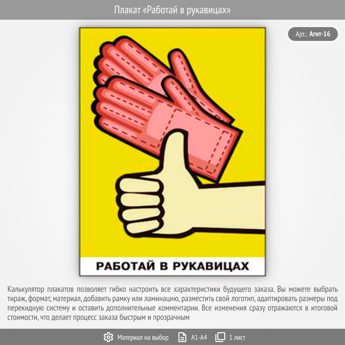 Плакат «Работай в рукавицах» (Агит-16, 1 лист) в Кашире купить
