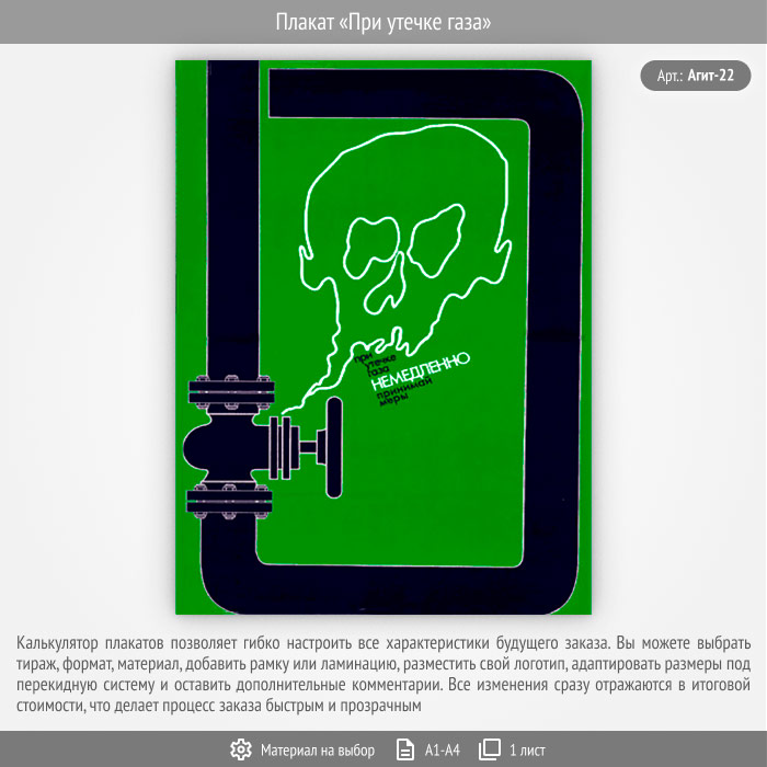 Плакат «При утечке газа» (Агит-22, 1 лист) в Кашире купить