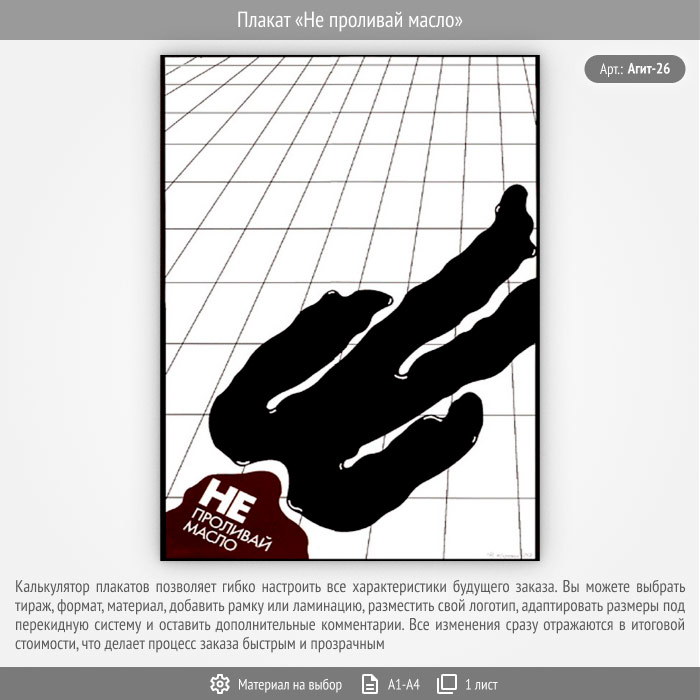 Плакат «Не проливай масло» (Агит-26, 1 лист) в Кашире купить