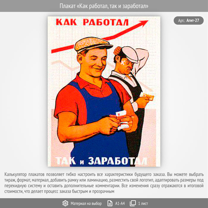 Плакат «Как работал, так и заработал» (Агит-27, 1 лист) в Кашире купить