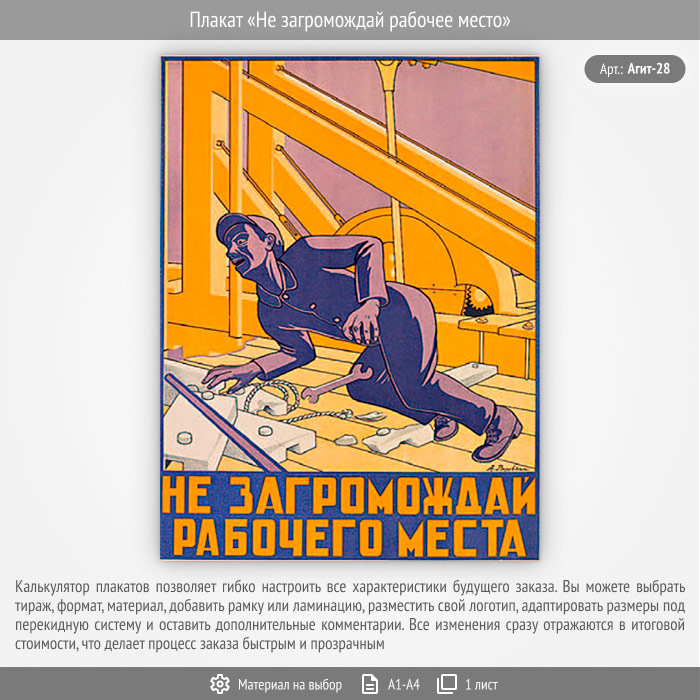 Плакат «Не загромождай рабочее место» (Агит-28, 1 лист) в Кашире купить