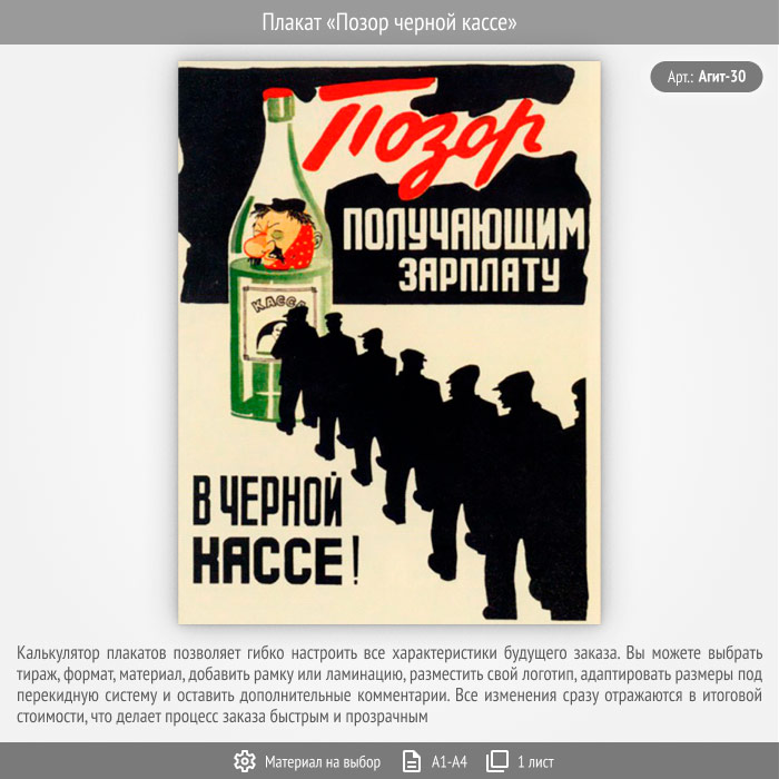 Плакат «Позор черной кассе» (Агит-30, 1 лист) в Кашире купить