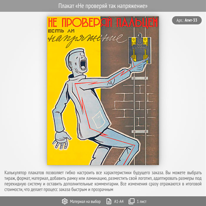 Плакат «Не проверяй так напряжение» (Агит-33, 1 лист) в Кашире купить
