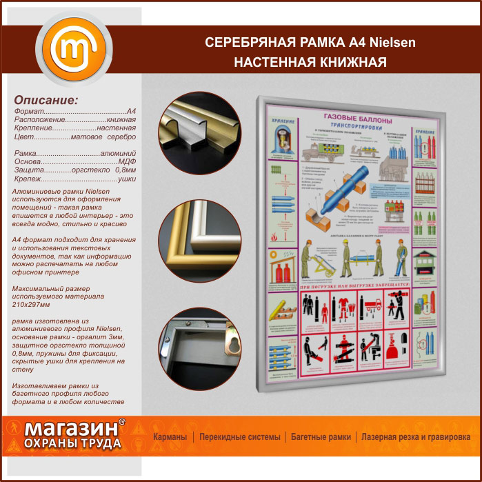 Багетная настенная рамка «Nielsen» А4 формата, книжная, матовое серебро в Кашире купить
