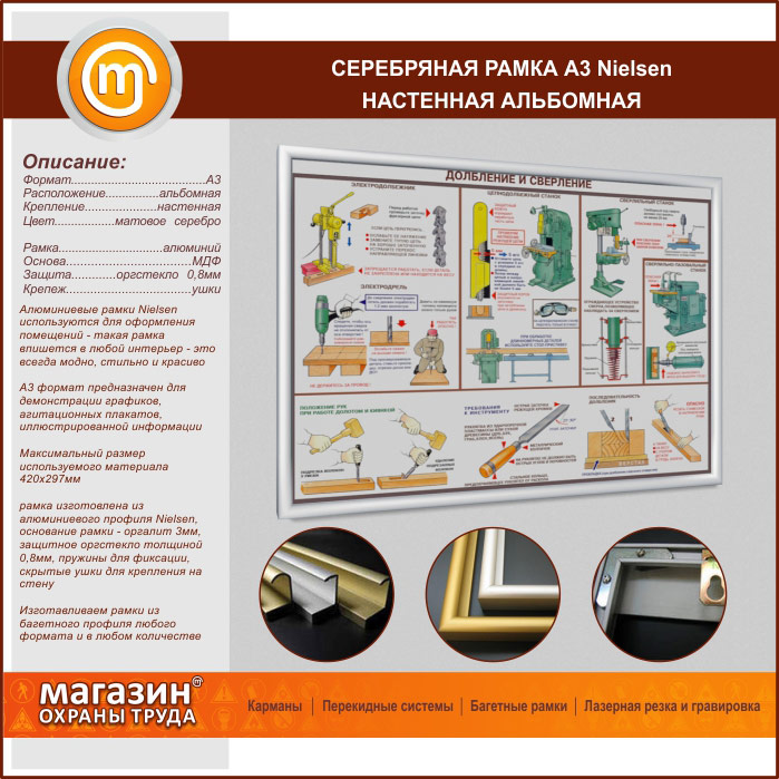 Багетная настенная рамка «Nielsen» А3 формата, альбомная, матовое серебро в Кашире купить