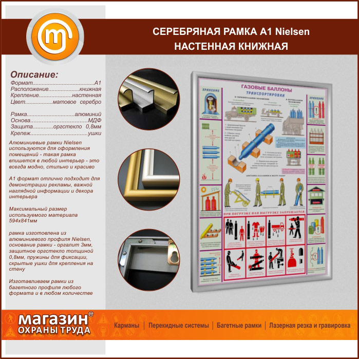 Багетная настенная рамка «Nielsen» А1 формата, книжная, матовое серебро в Кашире купить