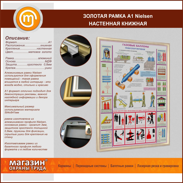 Багетная настенная рамка «Nielsen» А1 формата, книжная, матовое золото в Кашире купить