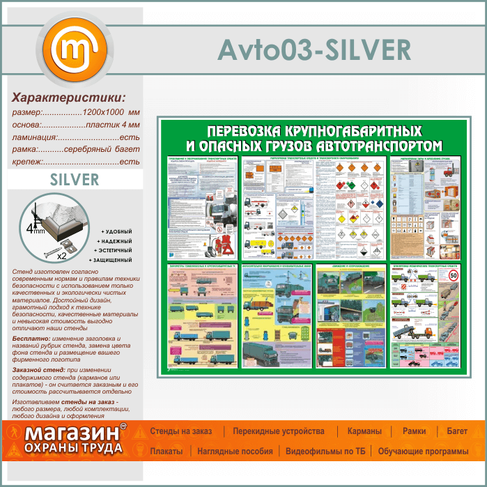 Стенд «Перевозка крупногабаритных и опасных грузов автотранспортом» (AV-03-SILVER) в Кашире купить