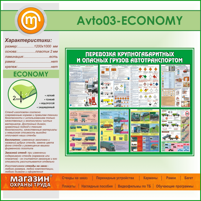 Стенд «Перевозка крупногабаритных и опасных грузов автотранспортом» (AV-03-ECONOMY) в Кашире купить