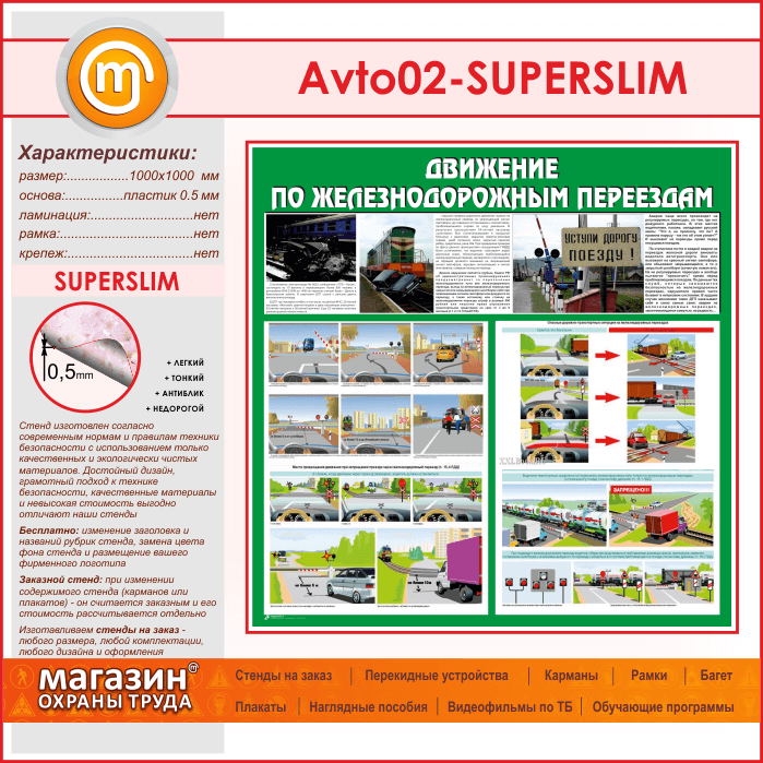 Стенд «Движение по железнодорожным переездам» (AV-02-SUPERSLIM) в Кашире купить