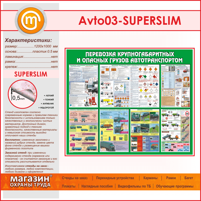 Стенд «Перевозка крупногабаритных и опасных грузов автотранспортом» (AV-03-SUPERSLIM) в Кашире купить