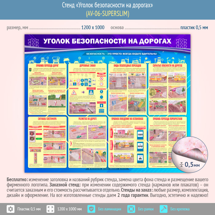 Стенд «Уголок безопасности на дорогах» (AV-06-SUPERSLIM) в Кашире купить