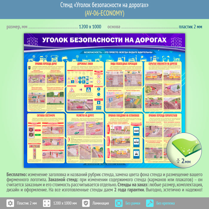 Стенд «Уголок безопасности на дорогах» (AV-06-ECONOMY) в Кашире купить
