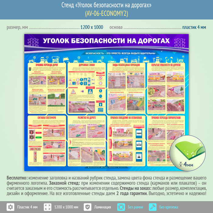 Стенд «Уголок безопасности на дорогах» (AV-06-ECONOMY2) в Кашире купить