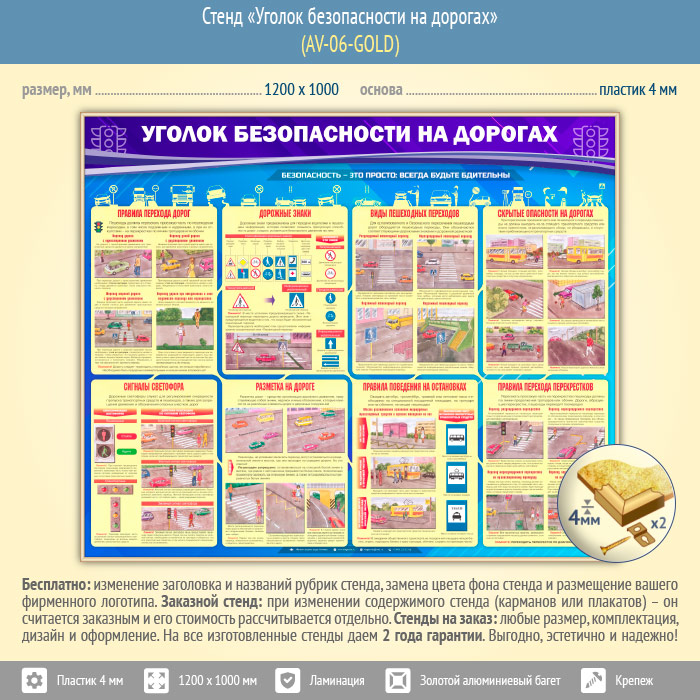 Стенд «Уголок безопасности на дорогах» (AV-06-GOLD) в Кашире купить