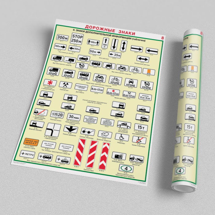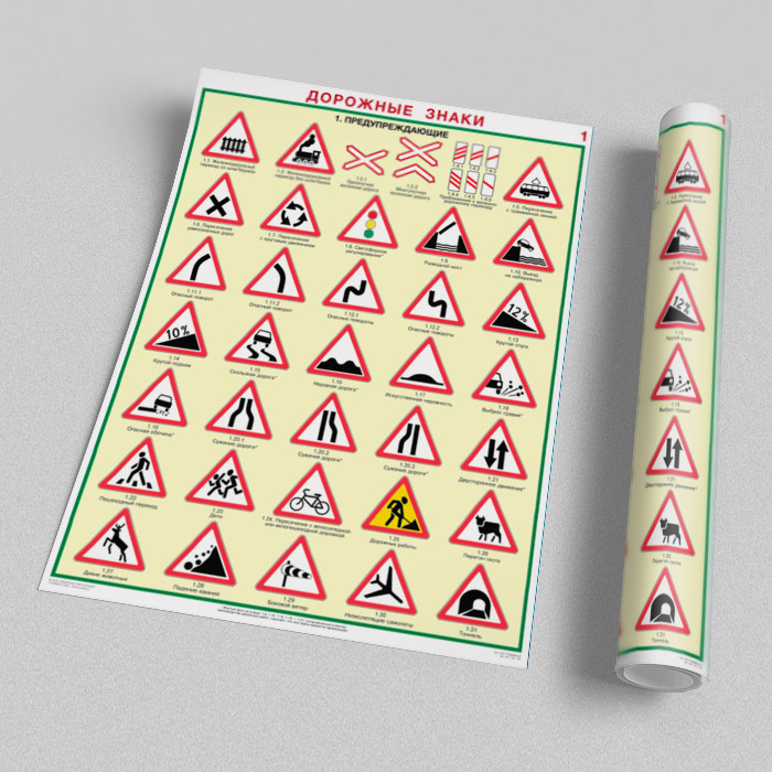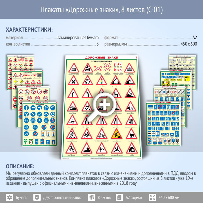 Плакаты «Дорожные знаки» (С-01, ламинированная бумага, А2, 8 листов) в Кашире купить