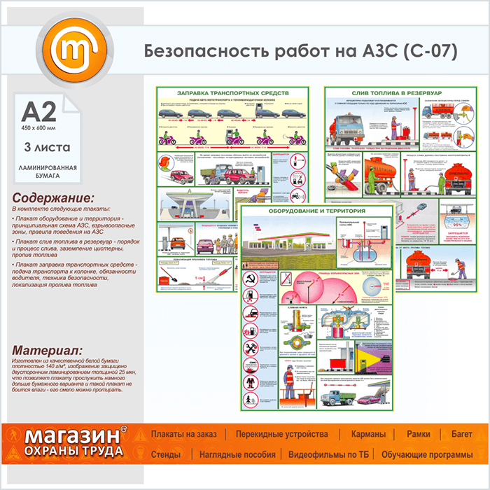 Плакаты «Безопасность работ на АЗС» (С-07, ламинированная бумага, А2, 3 листа) в Кашире купить
