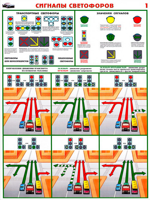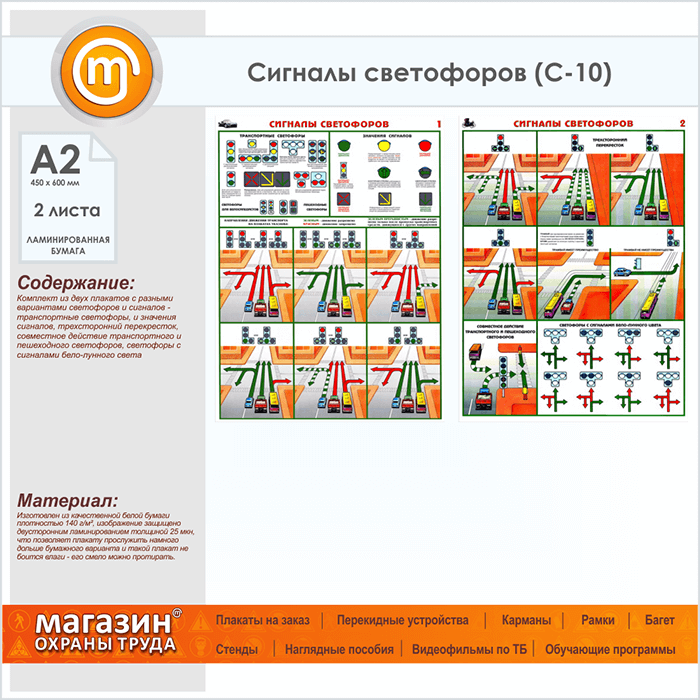 Плакаты «Сигналы светофоров» (С-10, ламинированная бумага, А2, 2 листа) в Кашире купить