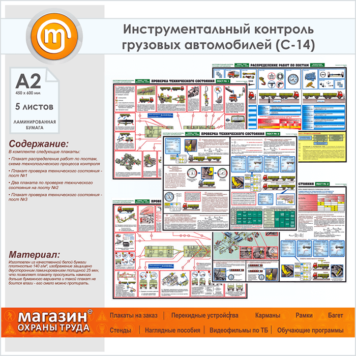 Плакаты «Инструментальный контроль грузовых автомобилей» (С-14, ламинированная бумага, А2, 5 листов) в Кашире купить