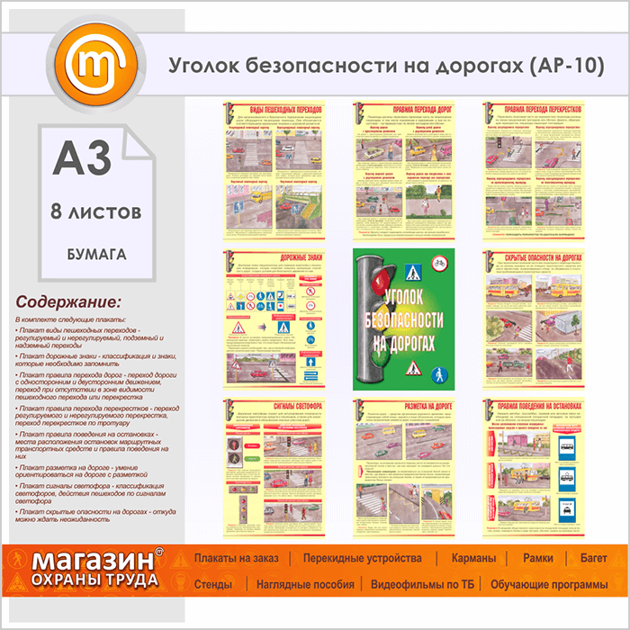 Плакаты «Уголок безопасности на дорогах» (АР-10, бумага, А3, 8 листов) в Кашире купить