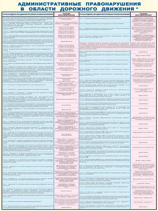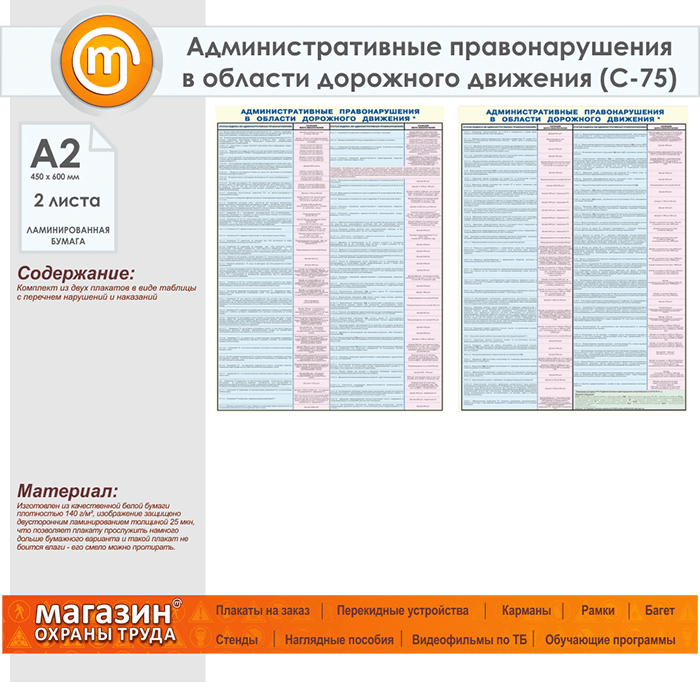 Плакаты «Административные правонарушения в области дорожного движения» (С-75, ламинированная бумага, А2, 2 листа) в Кашире купить