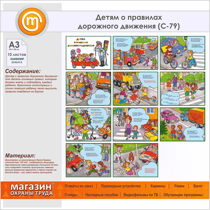 Плакаты «Детям о правилах дорожного движения» (С-79, ламинированная бумага, А3, 10 листов) в Кашире купить