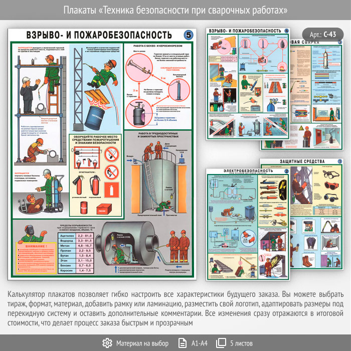Плакаты «Техника безопасности при сварочных работах» (С-43, 5 листов) в Кашире купить