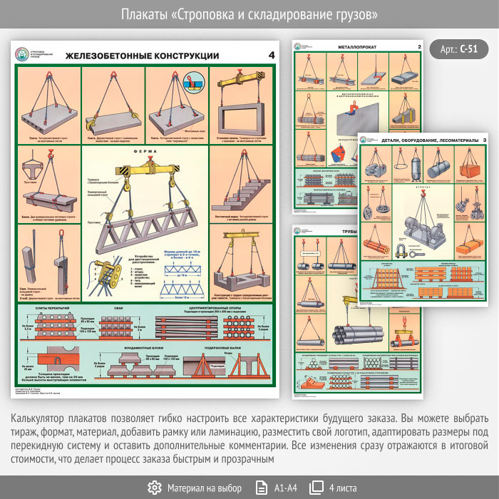 Плакаты «Строповка и складирование грузов» (С-51, 4 листа) в Кашире купить