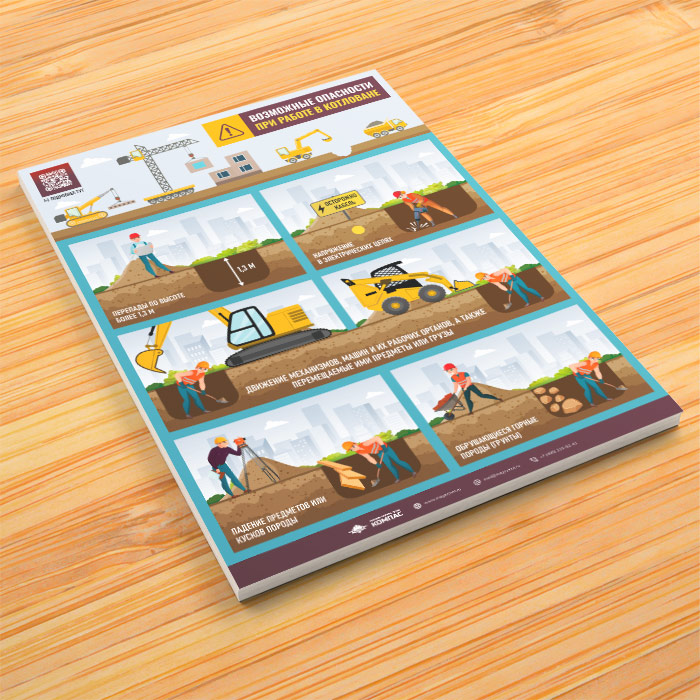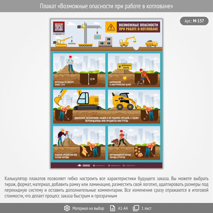 Плакат «Возможные опасности при работе в котловане» с QR (М-137, 1 лист) в Кашире купить