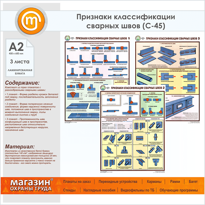 Плакаты «Признаки классификации сварных швов» (С-45, ламинированная бумага, А2, 3 листа) в Кашире купить