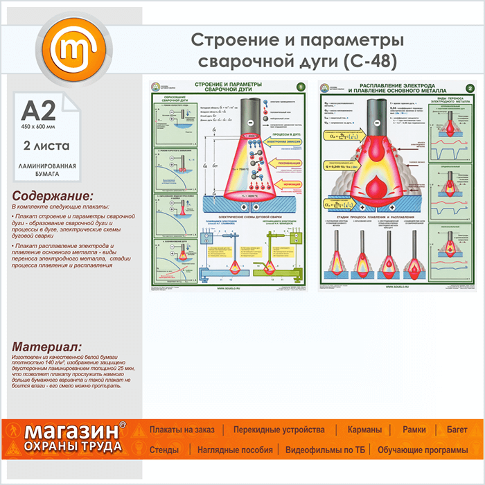 Плакаты «Строение и параметры сварочной дуги» (С-48, ламинированная бумага, А2, 2 листа) в Кашире купить