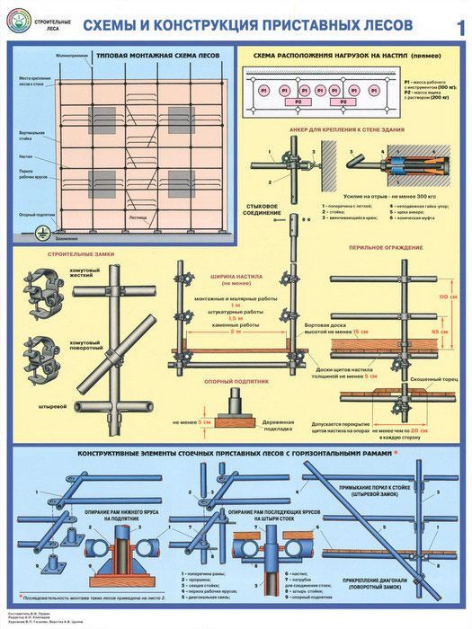 Плакаты «Строительные леса - конструкции, монтаж, проверка на безопасность» (С-55, ламинированная бумага, А2, 3 листа) в Кашире купить