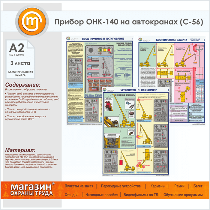 Плакаты «Прибор ОНК-140 на автокранах» (С-56, ламинированная бумага, А2, 3 листа) в Кашире купить