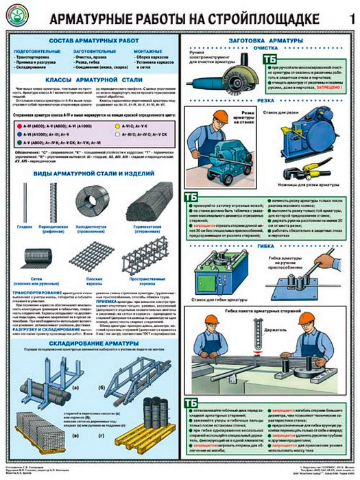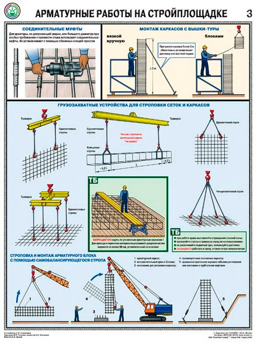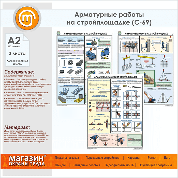 Плакаты «Арматурные работы на стройплощадке» (С-69, ламинированная бумага, А2, 3 листа) в Кашире купить
