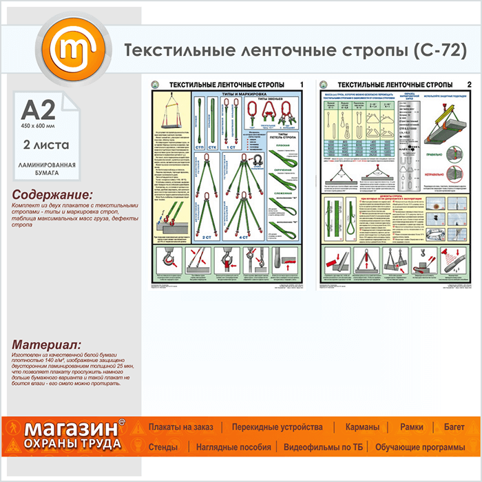 Плакаты «Текстильные ленточные стропы» (С-72, ламинированная бумага, А2, 2 листа) в Кашире купить