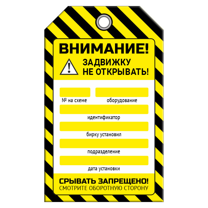 Бирка «ЗАДВИЖКУ НЕ ОТКРЫВАТЬ!» (1 шт., двусторонняя, пластик, 70х115 мм) в Кашире купить