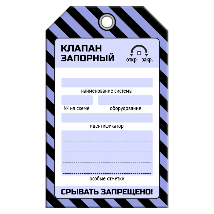 Бирка «КЛАПАН ЗАПОРНЫЙ» (1 шт., односторонняя, пластик, 70х115 мм) в Кашире купить