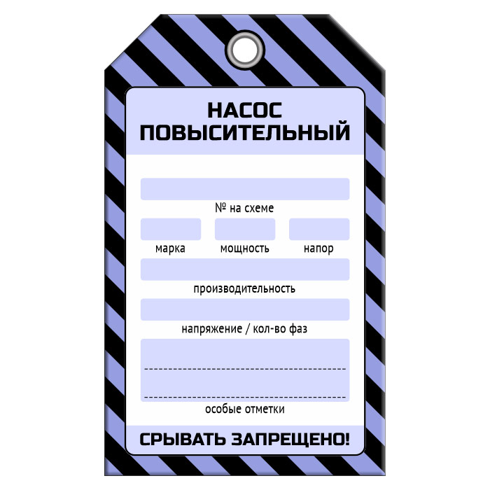 Бирка «НАСОС ПОВЫСИТЕЛЬНЫЙ» (1 шт., односторонняя, пластик, 70х115 мм) в Кашире купить