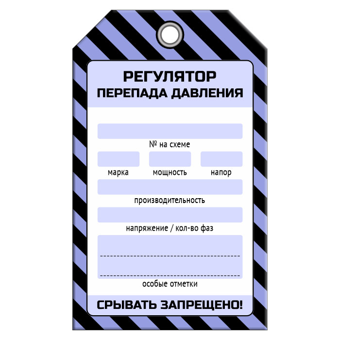 Бирка «РЕГУЛЯТОР ПЕРЕПАДА ДАВЛЕНИЯ» (1 шт., односторонняя, пластик, 70х115 мм) в Кашире купить