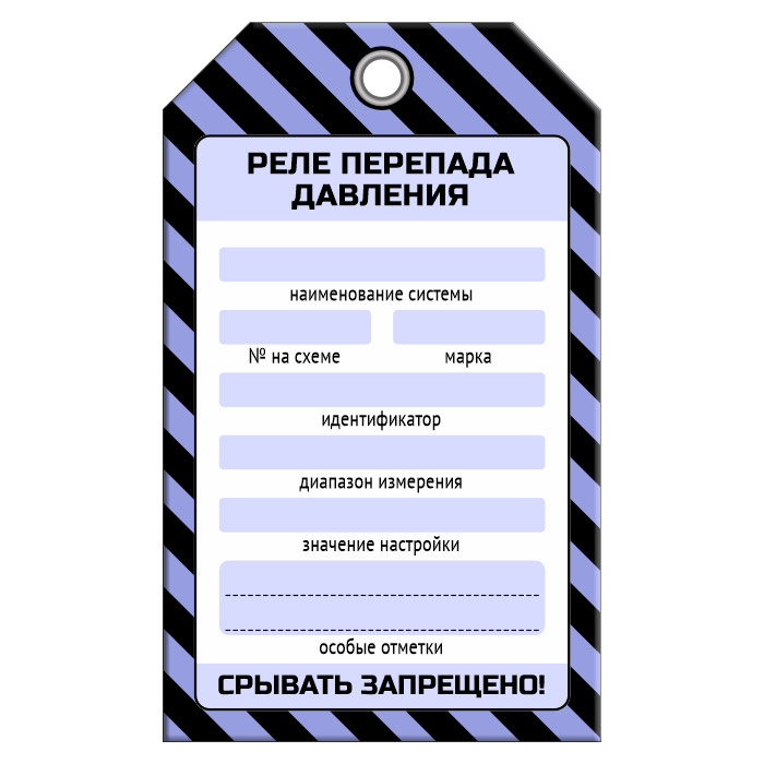 Бирка «РЕЛЕ ПЕРЕПАДА ДАВЛЕНИЯ» (1 шт., односторонняя, пластик, 70х115 мм) в Кашире купить