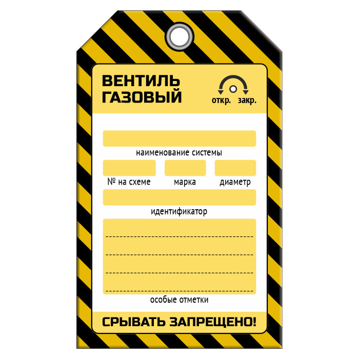 Бирка «ВЕНТИЛЬ ГАЗОВЫЙ» (1 шт., односторонняя, пластик, 70х115 мм) в Кашире купить
