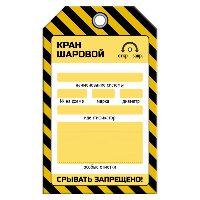 Бирка «КРАН ШАРОВОЙ» для газопровода (1 шт., односторонняя, пластик, 70х115 мм) в Кашире купить