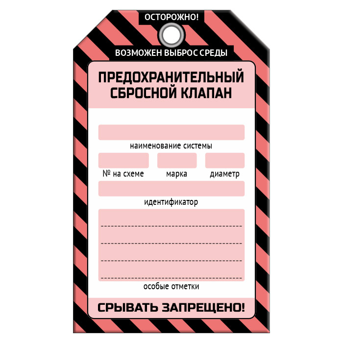 Бирка «ПРЕДОХРАНИТЕЛЬНЫЙ СБРОСНОЙ КЛАПАН» (1 шт., односторонняя, пластик, 70х115 мм) в Кашире купить