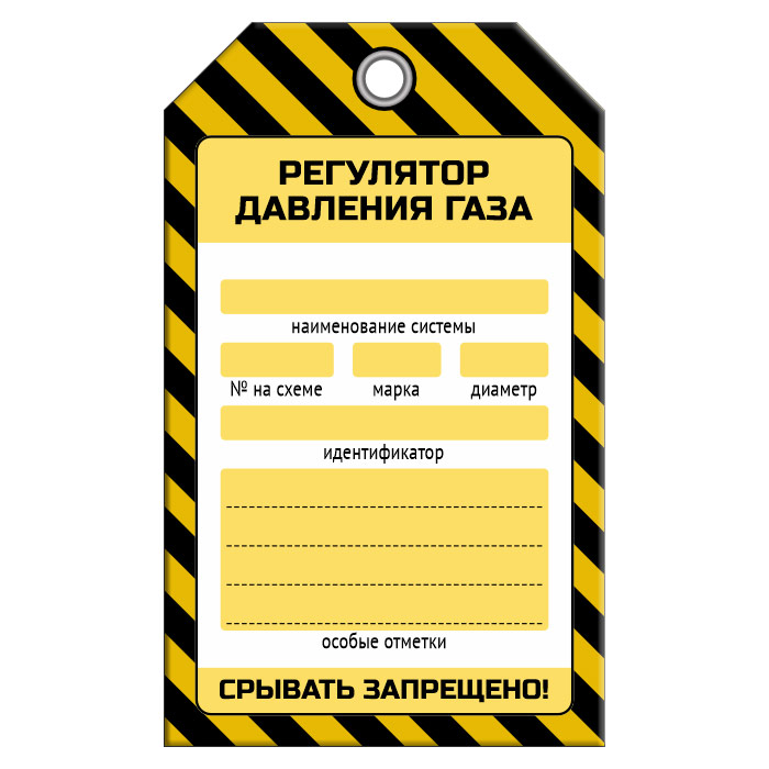 Бирка «РЕГУЛЯТОР ДАВЛЕНИЯ ГАЗА» (1 шт., односторонняя, пластик, 70х115 мм) в Кашире купить